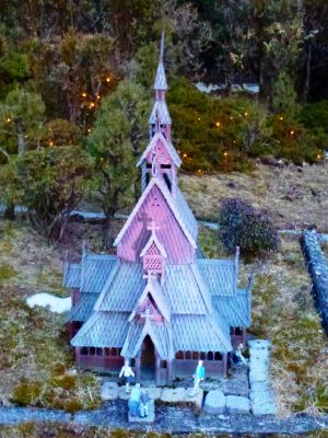 | 12世紀にキリスト教が北欧に伝えられると、教会堂はそれまで北欧にあった木造の建築と結びつき、校倉(あぜくら)式で横に角材を積み重ねた教会が作られました。このボルグンド教会は最高の技術であり、北欧を代表する木造建築です。 |