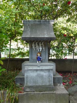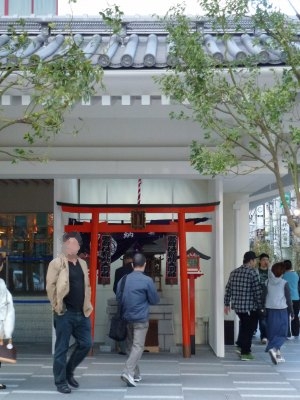 以前の歌舞伎座では塀の中にあり、一般の人は参拝できなかったそうですが、新しい歌舞伎座では正面右の目立つ場所に鎮座しています。