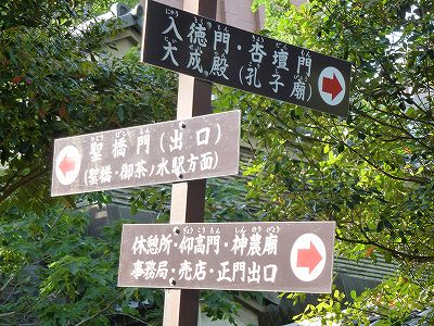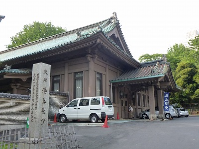 JR中央線、御茶ノ水駅聖橋口から出て、聖橋を渡り右手の森の中にあります。「日本の学校教育発祥の地」のパネルが目に留まります。 |