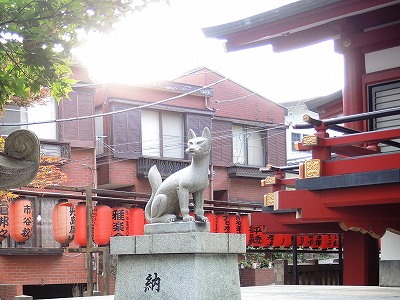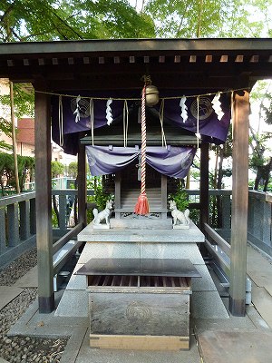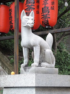 市谷八幡神社の境内、石段左の方中段に御鎮座する茶木稲荷神社。
