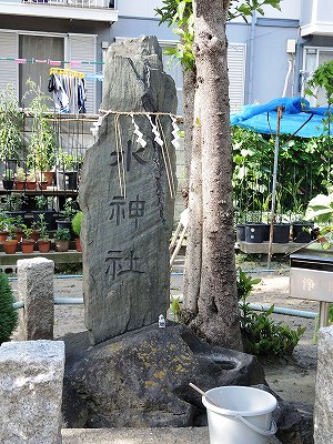 | 『南葛飾郡神社要覧』によれば、創立は寛文12年(1672)であり、霊巌寺領の鎮守であったという。『新編武蔵風土記稿』巻之25によれば、愛宕社周辺を念仏堂跡といい、古くは霊巌寺の住僧松風が起立し、その後、珂碩和尚が住む。洪水のために堂宇が流出したため、荏原郡奥沢村に移転したという。『大島町誌』によれば、奥沢浄真寺には、珂碩上人が常念仏で用いた接待茶釜が残されその銘には「奉寄進鑵子1口。為二親菩提。寛文8年霜月25目常念仏900日。武州豊島郡葛西荘大島村常念仏堂什物。沙彌浄心」とあるという。奥沢への移転は延宝6年(1678)である。愛宕神社境内に地蔵像が数体残され、享保10年(1725)銘の供養塔には亀戸出村講中と彫られている。愛宕神社周辺を亀戸出村と称していた名残である。竪川が万治3年(1660)に掘られた際に、亀戸村から切り離されたためにこのような地域名を唱えるようになったと思われる。氏子としては、江戸時代は大島村・大島町の鎮守であり、現在は亀出東部陸会でお守りしている。 |