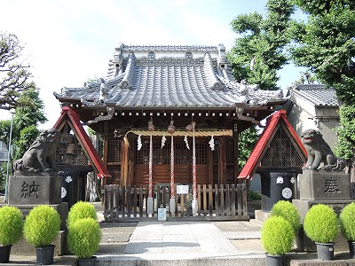 水運のために竪川(首都高速7号線の下)が造られたため、亀戸村から切り離された当地周辺を亀戸出村と称していましたが、江戸時代後期に編纂された新編武蔵風土記稿では、大島村項に、愛宕神社として記載されており、大島村・大島町の鎮守として記載されています。また霊巌寺領であったことから、念仏堂が当社近くにあったといい、現在も子育地蔵尊が安置されています。昭和48年に、大島1-37に鎮座していた草分稲荷神社を当社境内へ遷座しました。