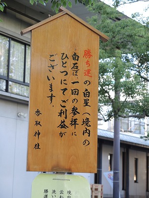 御由緒:享保年間(1716〜1735)の創立。有名な亀戸梅屋敷園主安藤喜右エ門が園内のおまいりしていたのを命じの末当り、香取神社に移した。