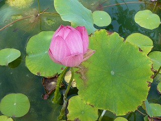 瓶にピンクの蓮の蕾が一つと、