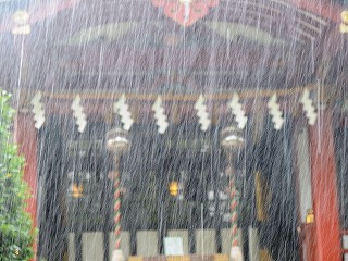 | 15分ほどして雨足が弱まったので拝殿に移動しました。 |
