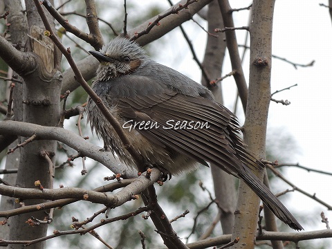 すぐそばの木に停まったヒヨドリ。