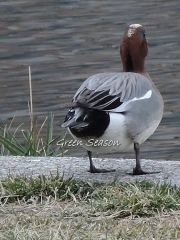 ヒドリガモが餌を食べる後姿です。