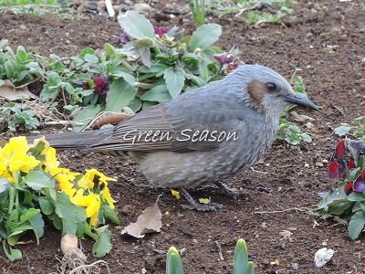 北側の花壇ではヒヨドリが