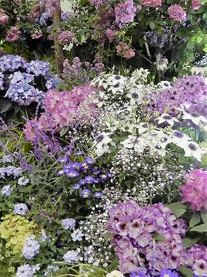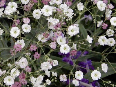 白と紫色の花が咲く、カスミソウを初めてみました。