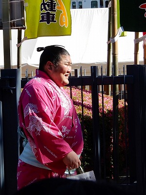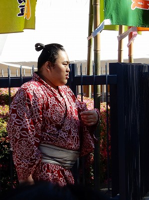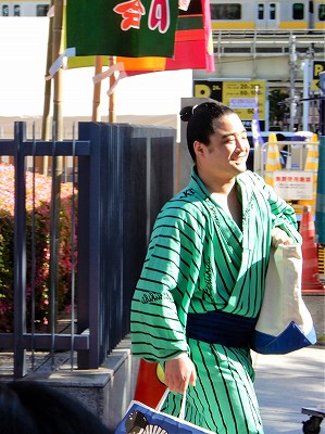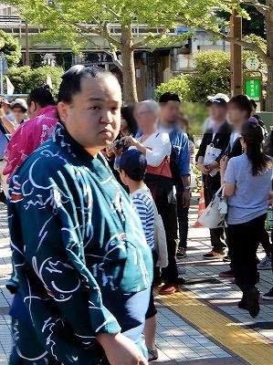 取り組みが終わり両国駅方面に向かう力士と相撲ファン