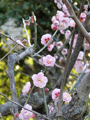 梅の音は古代は「うめ」で近世で「むめ」となり現在は「うめ」に戻りました。梅は万葉集では萩に次いで2番目に多く118首詠まれ、古来から花木として愛されてきました。戦国時代から江戸時代にかけ、実が糧食としても、もてはやされるようになり、各地で栽培されるとともに品種改良もこの頃から盛んになりました。花を観賞する花うめ、実を採る実うめ、梅とあんずの交雑種とされているものなど多くの品種があります。その魅力は。丈夫で栽培が容易で、日本人の実的感覚にとけこみ、清香を放ち、気品さがあり、さくらとともに日本を代表する花木として並び称されています。 |