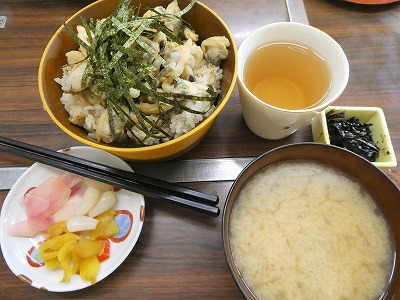 アサリの炊き込みご飯の量が半端なく多くて、テーブルの上には、お持ち帰りできるように、ラップが用意されています。案の定、半分くらい持ち帰りました。