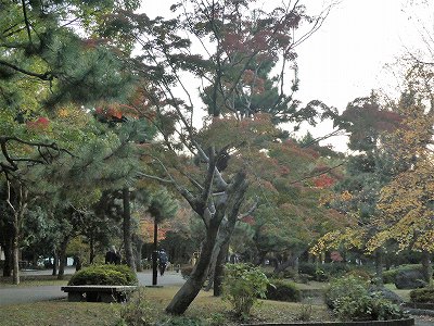 岩崎弥太郎が三菱の社員の慰安などを目的に作った深川親睦園です。一部が清澄庭園として残される一方、西側が清澄公園として活用されています。木もけっこう多いので、木陰の中のランニングコースにもなる。シンボルは、和風の時計塔。この季節(11月末から12月初め)は、イチョウやモミジ、ケヤキなどが色づいて風情を感じさせるはずですが。。 ・・・・紅葉にはこちらも少し早かったようです。