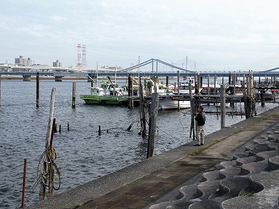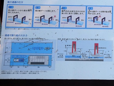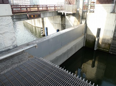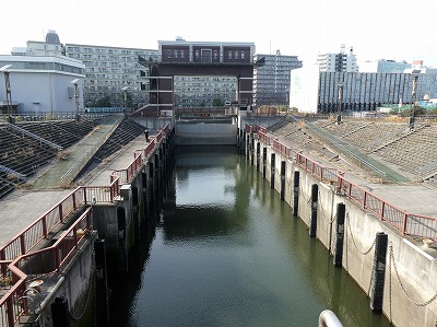 4→旧中川側ゲートを開け船を閘門から出します。 |