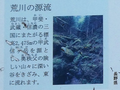 | 荒川は、甲斐・武蔵・信濃の三国にまたがる標高2,475mの甲武信ケ岳を源とし、奥秩父の険しい山々に深い谷をきざみ、、東に流れます。 |