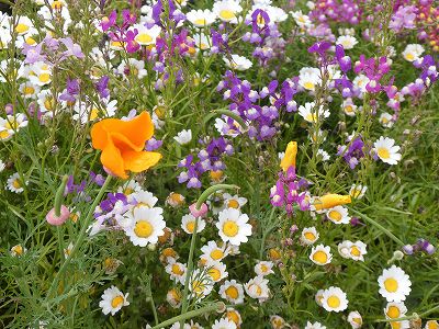 花菱草、クリサンセマム、ヒメキンギョソウ