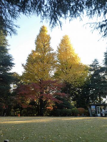 芝生公園の銀杏と売店