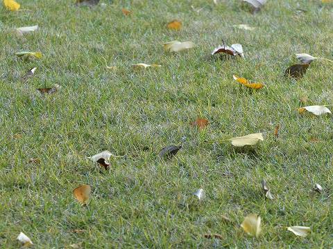 芝生上の落ち葉
