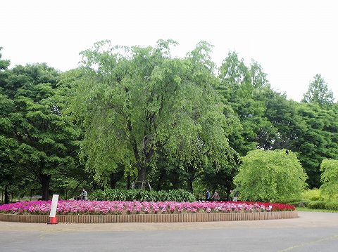 大木の下は、色違いのナデシコ畑