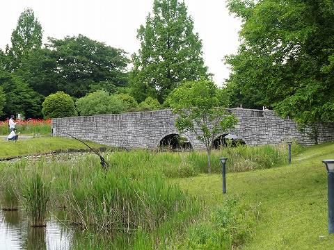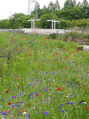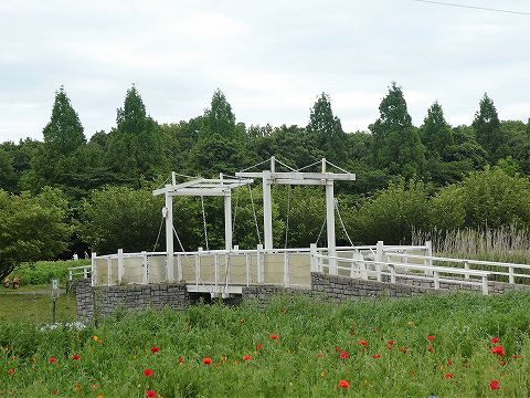 跳ね橋とヤグルマソウとポピー
