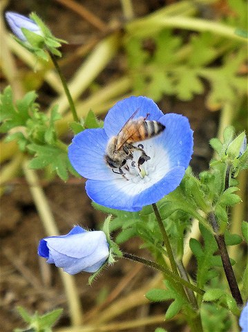 ネモフィラとハチ