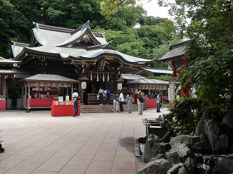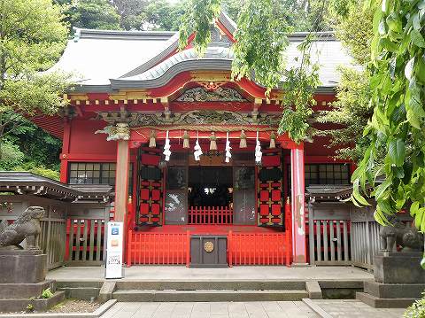 江戸歌舞伎中村座、市村座から寄進された石灯籠など、当時の江の島詣での盛況がうかがえます。平成23年(2011)年に正面両袖に四季を物語る透板欄間塀、また、神域に水琴窟を造り一層厳さを増しました。 |