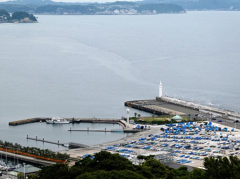 高さ59.8m、海抜119.6mの展望灯台からは、南に大島、西に富士山、東に三浦半島を望むことができます。