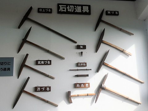 江戸時代◆安政の頃、伊豆の石切職人が渡来し鋸山周辺で建築用に石切を始める(土丹岩)更に万延、元治、慶応の頃になるとそれまでの悪い石から、質の良い石の採石が盛んになり、石切り場も鋸山本峰に移った。1895年には横浜港開港に伴い、護岸工事用材、土木工事材として優秀性が認められ生産も大規模化された。