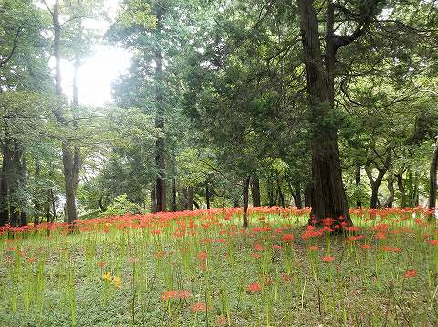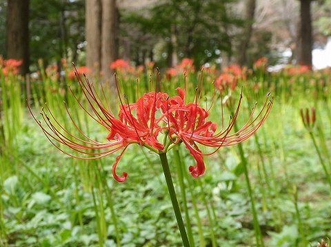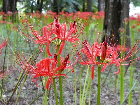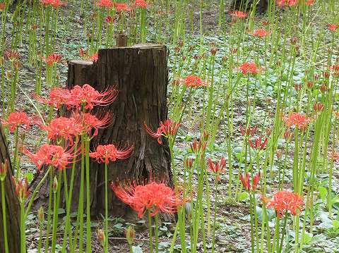 雑木林の中のヒガンバナの絨毯、楽しんでますか?