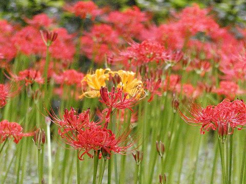 鮮やかなヒガンバナが見頃と、