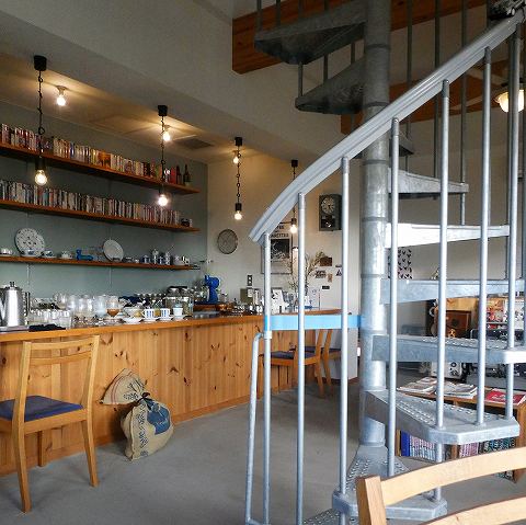 店内の螺旋階段