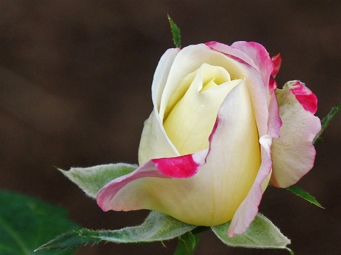 裏がラベンダー色となる小輪カップ咲きです。