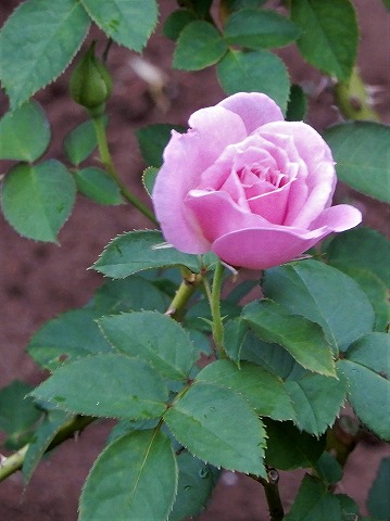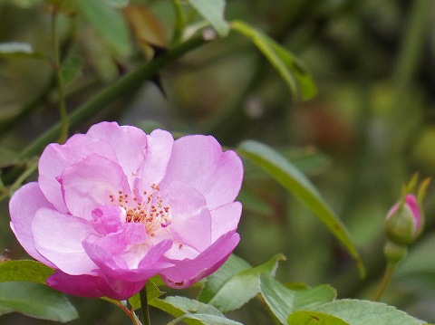 シュラブ系の園芸品種。花は花弁の表がライラック色