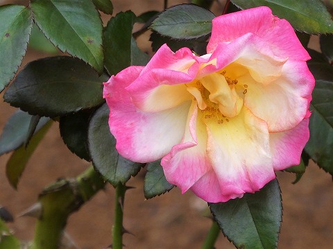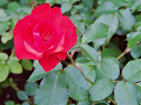 バラで、株は強く葉は厚みがあります。