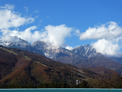 数日前にTVで白馬で雪を頂いた山々と、