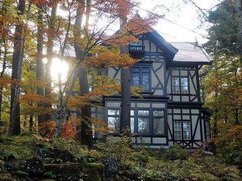 木漏れ日の林の中に建つ英国チュ-ダー様式の館