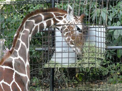 計画的な血統更新と、ウォークスルーにいる個体の健康管理のために、現在オスとメスを分けていて、メスはウォークスルー内にいるそうですが、今は見学できない時間です。 |