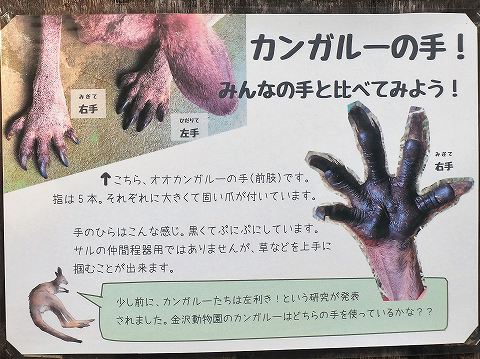 少し前に、カンガルーじゃ左利き!という研究が発表されましたが、金沢動物園のカンガルーはどちらの手を使っているかな?? |