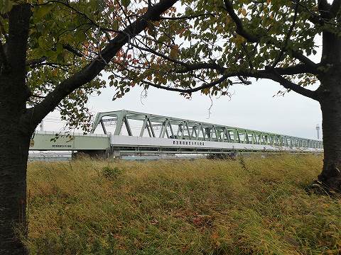 荒川に架かる都営新宿線の鉄橋と都営新宿線