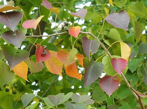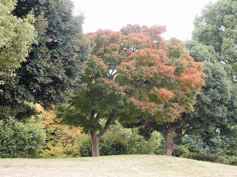 モミジはまだ青々して、ナンキンハゼが