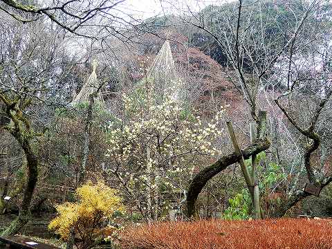 ロウバイと、雪吊り