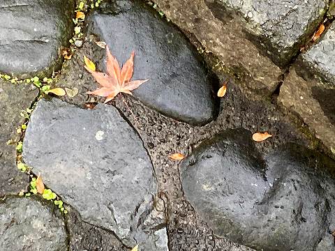 石階段の落ち葉