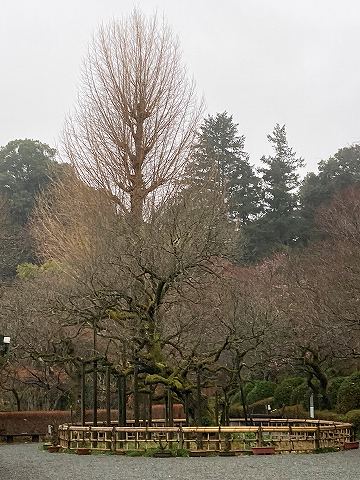 背の高いイチョウの枯木と