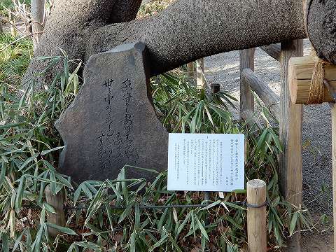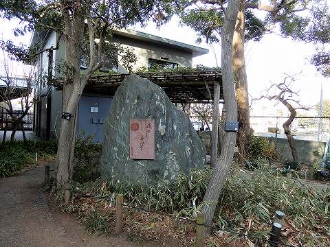 谷中の墓地には、スエコザサと共にこの二句を刻んだ墓碑が建っています。 |