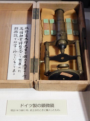 初めて上京する折に万国勧業博覧会にて買い求めた顕微鏡。