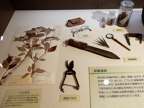富太郎は採集の時に、胴乱、根堀、はさみ、管瓶、野冊などを持ち歩いていました。。こうした採集道具にも富太郎はこだわりをみせました。