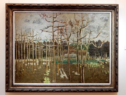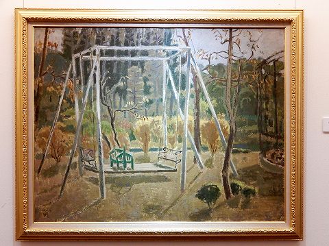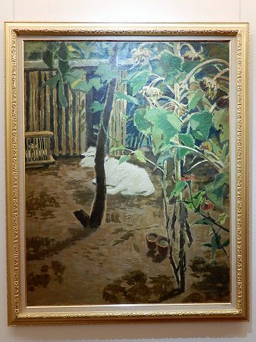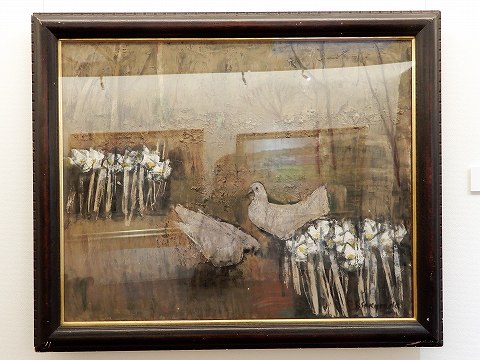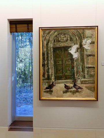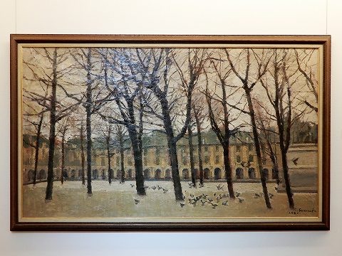 その作柄が目立つことになったのは、鳩の連作の時期(50~65歳)だ。鳩を飼い、鳩に凝った。鳩を通じ、絵画の抽象的な要素、面・点・線を考えていた。最良の充実期はそのあとに来る。特に70歳代が素晴らしい。ブリュージュ・奈良をモチーフに逸品を残した。いずれも余韻があって魅する。