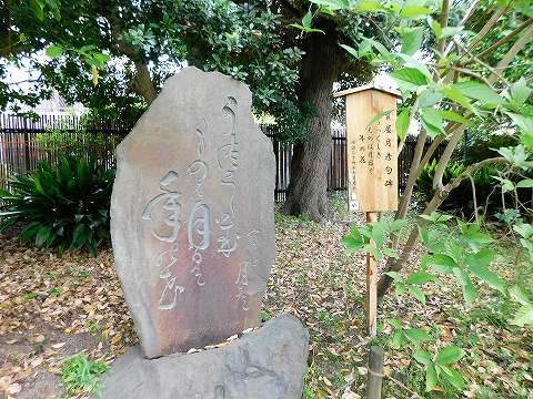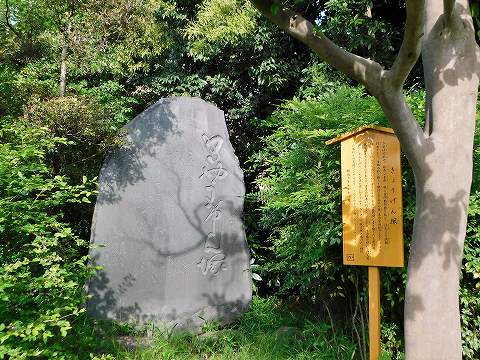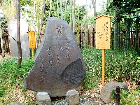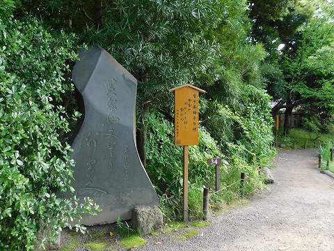庭園内には、庭づくりに協力した文人墨客たちの足跡が、石碑などに残されていました。
