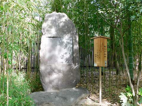 | 二世河竹新七、俳名は其水(きすい)、晩に古河黙阿弥と改む。壮年より演劇作者となり、古希の齢(よわい)を踰(こ)えて明治25年の春、喜の字の祝さえなしけるに、明くる年料(としはか)らずも病のために身まかりぬ。その一生の間に書き綴りたる新作の狂言およそ300余ほどありて、古来の作者に珍しきことなれば、その名を続ける門人等師のむすめと計り、これを後の世に伝えてんと、石を建てて狂言塚と名づけ、初代の名残りの葱塚(しのぶつか)になずらえて、、しのぶの文字を書きつくることしかり。 -明治27年11月- |