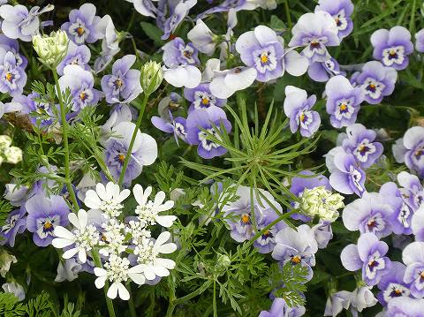 パンジーと白い花